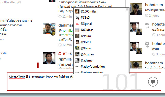มีความสามารถในการ Preview ชื่อ User ได้ด้วย เผื่อเวลานึกไม่ออกว่า @ อะไร