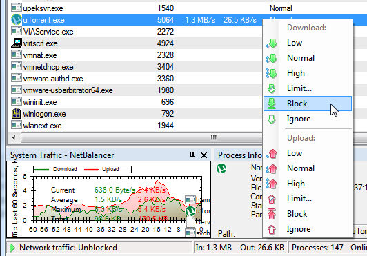 สำหรับใครก็ตามที่มีความสงสัยอยากจะรู้ว่า โปรแกรมอะไรในเครื่องเราบ้าง ที่ตอนนี้มันกำลังแอบ download / upload อยู่ หรือ ใครที่อยากจะควบคุมระดับวรรณะของการใช้งาน Network ในเครื่อง เช่นโหลดบิทไปด้วย แต่ยังเล่น Internet ไปด้วยแบบสบายๆ (ปล. มันผิดกฏหมาย ผมไม่สนับสนุนหรอกนะ แต่คิดซะว่ายกตัวอย่างคราวๆละกัน) อะไรแบบนี้ วันนี้คุณต้องลองโปรแกรมตัวนี้เลยครับ