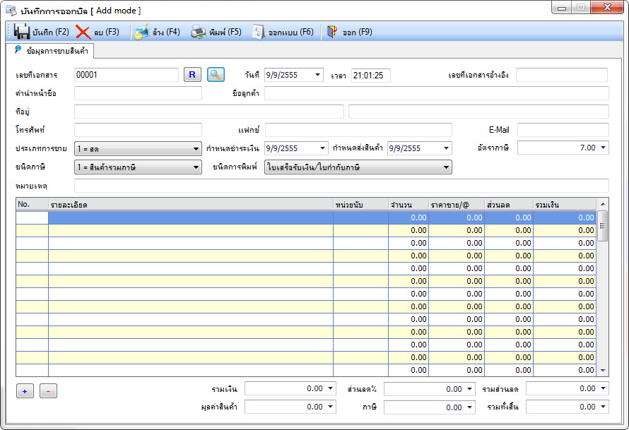 วิธีการใช้งานก็เป็น เรื่องของการออกบิลอย่างเดียว รองรับเรื่อง หมายเลขเอกสาร , การคำนวนภาษี , การคำนวนจำนวนสินค้า แล้วคิดภาษีให้เสร็จ แล้วก็บันทึกรายชื่อลูกค้า เก็บลงฐานข้อมูลได้ แล้วทำสรุปรายงานการขายได้ด้วย ซึ่งถ้าเกิดใช้ของฟรีของทาง Nanosoft แล้วถูกใจ ก็ไปอุดหนุน สินค้าตัวอื่นๆของเค้ากันได้ที่ http://www.nanosoft.co.th กันได้ครับ