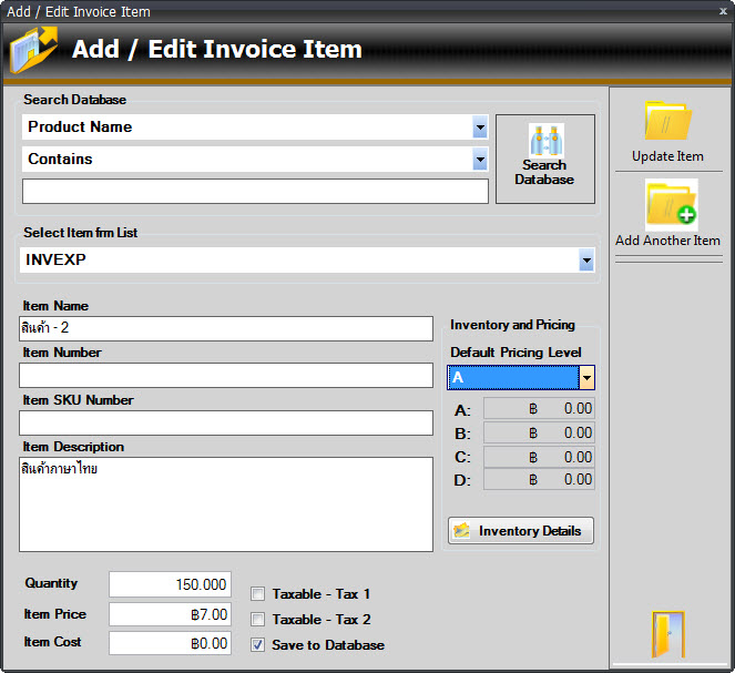 รองรับการออกเอกสารทั้ง Quotation / Invoice และใบเสร็จ มีระบบ Inventory Control แบบง่ายๆให้เอาไว้ดูแล Stock ของสินค้าด้วย และยังสามารถเก็บฐานข้อมูลของลูกค้ากับ Supplier ได้อีกต่างหาก