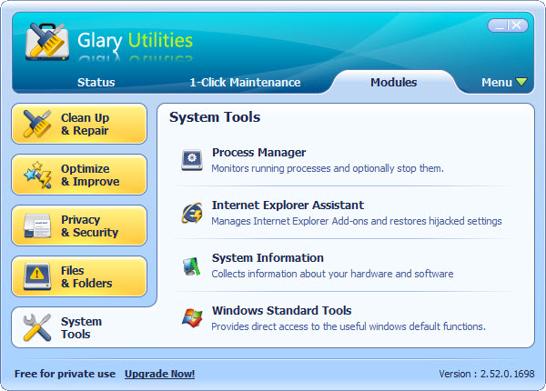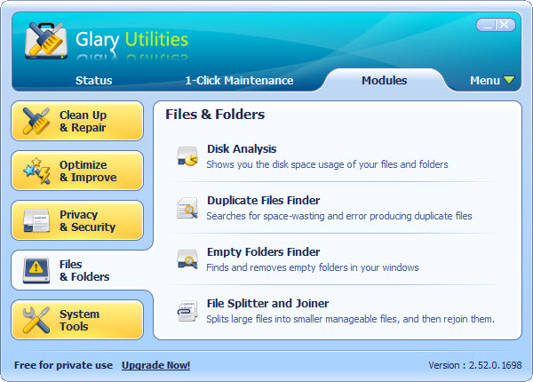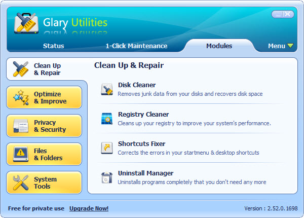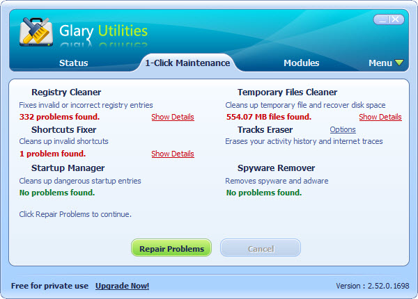 ความสามารถหลักๆของ Glary Utilities ก็จะมี 1-Click Maintenance นี่แหละครับ กดปุ่มเดียวดูแลทั้งเครื่อง ไม่ว่าจะเป็น ทำความสะอาด Registry , ลบไฟล์ขยะ , แก้ไขปัญหา Shortcut เสีย / รวมถึงหา Spyware ให้ด้วย