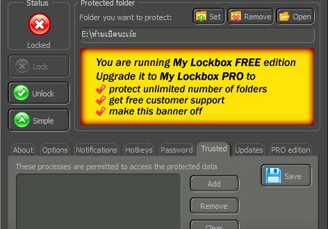 และที่ผมชอบมากก็คือ มีคำสั่ง Trusted ครับ ก็คืออนุญาตให้ Process บางตัวเข้าไปทำงานกับโฟลเดอร์ที่เราล็อคเอาไว้ได้ ทำให้เราไม่ต้องมานั่งเปิดๆ ปิดๆบ่อยๆเวลามีคิวงานอัตโนมัติที่เราสั่งไว้ทำงานขึ้นมา
