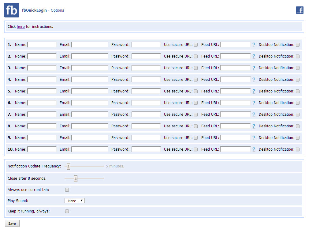 วิธีการก็ไม่มีอะไรมากครับ แค่ลง Extension ที่ชื่อ fbQuickLogin จาก Chrome WebStore จากนั้นก็กรอกข้อมูลว่าอยากจะให้มี Facebook Account ไหนบ้างที่เราจะบันทึกเอาไว้